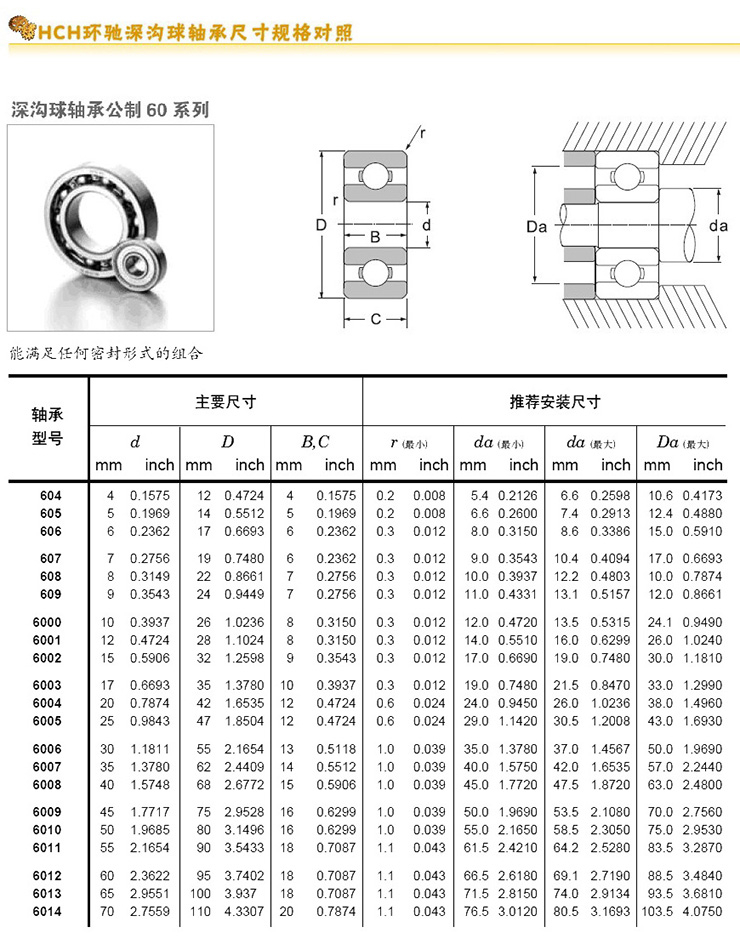 • HCH國產軸承深溝球公制60系列系列6012 ZZ